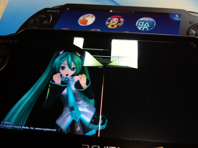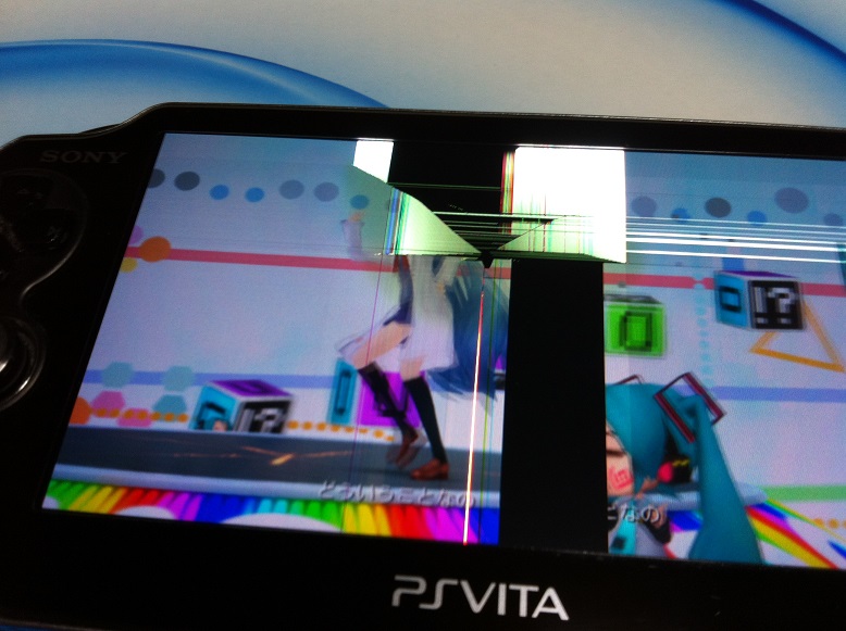 Vitaを手に取ろうとして手を滑らせて落としてしまいこの通り