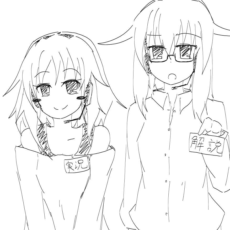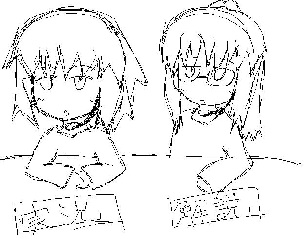実況さんと解説さん初登場の絵を今の絵で描き直してみた